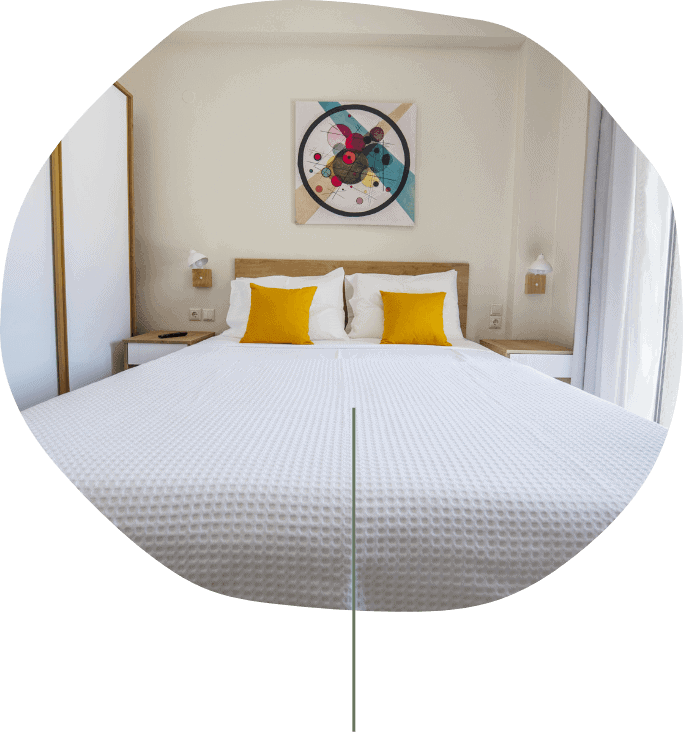 Our luxury 8 rooms are combine comfort, and modern asthetic, relax and enjoy the Greek summer